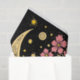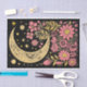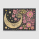 Unleash your artistic spirit with our decoupage paper featuring a boho moon and floral design in striking block print style. Against a black background, it adds a touch of mystique and elegance to your creative projects.