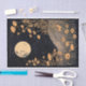 Unleash your artistic spirit with our decoupage paper featuring a boho moon and floral design in striking block print style. Against a black background, it adds a touch of mystique and elegance to your creative projects.