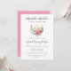 Boho Moon Crystals Feathers Flowers Business Event , Grand Opening, Open House Invitation with white background and pink reverse backs.