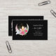 Boho Moon Crystals Feathers Flowers Crystal Cluster, Pink Watercolor Flowers, white feathers, Leaves with watercolor Crescent Moon Design Business Cards. Text ready for your info.