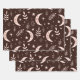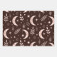 Boho moon pattern with leaves and stars wrapping paper sheet