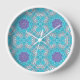 Boho Moroccan Embroidery turquoise blue bohemian Clock