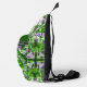 Boho Mosaic Tile Green Grass - this fresh Green Grass style Sling Bag / Crossbody Bag can be personalised on the top of the zipper pocket, just customise it with your name, or your favourite slogan, or delete it to have only the plain design on your product.