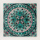 Relaxed puzzling - Boho Mosaic Tile Teal Ocean - this calm, clear Teal Ocean Design with burgundy accents shows a Mandala with a tile border