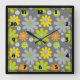 Boho Multicolor Daisies On Grey Square Wall Clock