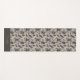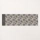 Double sided Boho Mystical Zen Celestial Pattern Yoga Mat pattern on a grey background in a modern neutral colour palette of brown, beige, gold and grey. Perfect for exercise, pilates, meditation, or your yoga practice. Makes and excellent gift for a yoga instructor. Moon, crystals, hand, female meditaiton, butterfly moth, bird, sun, moon, stars, key, snake, and leaves mystical design.
