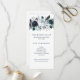 This trendy and elegant wedding program features boho navy blue watercolor peony flowers with lush leaves, berries, and feathers.
