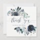 This trendy and elegant wedding thank you card features boho navy blue watercolor peony flowers with lush leaves, berries, and feathers. The front of the invitation says "thank you" in stylish modern typography along with your names and wedding date; your personal wedding photo is on the back surrounded by a floral frame.