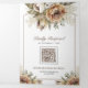 Boho Neutral Earthy Floral Taupe QR Code Wedding Tri-Fold Invitation