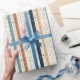 Boho neutral earthy navy rusty pastel blue stripes wrapping paper