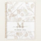 This bohemian planner features a custom script name and monogram, and solid neutral watercolor Lunaria on a white background. Ideal gift for nature lovers.