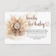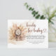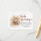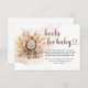 Whimsical design for Baby Shower invitation features Lavish bouquet of tropical pampas grass reeds mixed dried fan palm leaves elegantly envelops the cute baby bear wearing neutral light brown sweatshirt, as if tender mummy hug. Hand drawn typography say " We can bearly wait FOR BABY TO ARRIVE! "