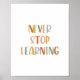 Boho never stop learning Poster Inspirational Quote Motivational Sign