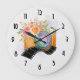 Boho Orange Camera & Flowers Watercolor Large Clock