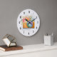 Boho Orange Camera & Flowers Watercolor Large Clock