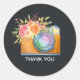 Boho Orange Camera & Flowers Watercolor Thank You Classic Round Sticker
