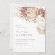 This customisable QR code wedding invitation blends modern convenience with soft boho style. Featuring a watercolor design of pampas grass, dried palm leaves, and white orchids, it includes space for a scannable QR code linking to your wedding website, RSVP form, registry, or event details. The neutral palette suits rustic, minimalist, or desert-inspired weddings. Perfect for couples looking to combine beauty with practicality in their stationery.
