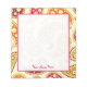 A notepad featuring a background of pink, orange, yellow, burgundy, and green paisley. Personalise with your name in pink.