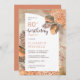 Whimsical watercolor dried light terracotta hydrangeas and palm leaves floral "80th Birthday Party" woman's birthday design. Composite design by Holiday Hearts Designs (rights reserved).