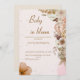 Invite your guests with this modern boho baby shower invitation featuring soft neutral tones, elegant pampas elements, and clean calligraphy.