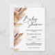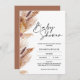 Elegant Boho themed baby shower invitation featuring a floral arrangement with pampas grass. The calligraphy heading is an image that can be removed. The back of the invitation is a plain terracotta color that can also be altered. This design is ideal for a gender neutral baby shower.