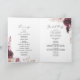 This boho pampas grass folded wedding program is perfect for a summer wedding. The floral watercolor design features bohemian burgundy and blush pink flowers with sprigs of neutral pampas grass and golden dried palm leaves.