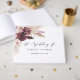 This boho pampas grass monogram back wedding guest book is perfect for a summer wedding. The floral watercolor design features bohemian burgundy and blush pink flowers with sprigs of neutral pampas grass and golden dried palm leaves. Personalise the front cover with the names of the bride and groom and the wedding date.