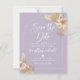 Save The Date engagement card in beautiful tones of lavender, beige, and white with an arch design and pampas grass foliage.