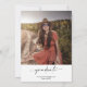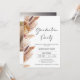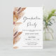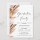 Elegant Boho themed graduation party invitation featuring a floral arrangement with pampas grass and the graduates photo on the back. Ideal for someone looking for a modern bohemian floral graduation party invitation in natural tones.