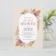 This bridal shower invitation features a boho designs accented with rose gold flowers, pampas grass and dried palms.