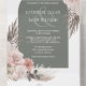 This Boho Chic modern all in one wedding invitation with RSVP is trending in a soft colour palette of sage green, pink and shades of champagne and beige. It features beautiful detailed roses and florals with pampas grass, palms and greenery. This lovely colour palette is perfect for a spring, summer or fall wedding. Personalise with all of your wedding details. The RSVP has the option to add meal choice if needed. For further customisation, please click the "customise further" link and use the advanced design tool to modify this template.