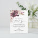 This boho pampas grass thank you reception card is perfect for a summer wedding. The floral watercolor design features bohemian burgundy and blush pink flowers with sprigs of neutral pampas grass and golden dried palm leaves. Place these cards at the table setting for each of your guests at your wedding reception. Personalise the card with your names and a special thank you message.