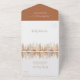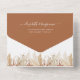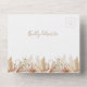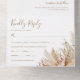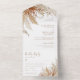 Rustic bohemian wedding all in one invitations featuring watercolor desert dried palm leaves, pampas grass, a modern wedding template, and a tear off perforated meal RSVP postcard. No envelopes needed for shipping, simply fold each card into the outlined shape, and then seal and send, its that easy!