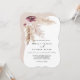 This boho pampas grass wedding invitation is perfect for a tropical wedding. The floral watercolor design features bohemian burgundy and blush pink flowers with sprigs of neutral pampas grass and golden dried palm leaves.