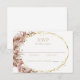 This boho themed wedding RSVP response card features wispy watercolors of pampas grass in dusty rose hues and subtle chocolate undertones. Sweet cream roses accent the gold glitter oval frame creating an elegant presentation for your guests. Designed to coordinate with our Boho Pampas Grass Wedding collection. Customise by adding your desired response date.