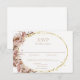 This boho themed wedding RSVP response card features wispy watercolors of pampas grass in dusty rose hues and subtle chocolate undertones. Sweet cream roses accent the gold glitter oval frame creating an elegant presentation for your guests. Designed to coordinate with our Boho Pampas Grass Wedding collection. Customise the important details by adding your desired response date and meal choices.