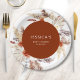 Boho baby shower paper plates in terracotta burnt orange and white. Beautiful modern design with hand painted botanical accents. Features pampas grass, dried banana leaves and roses. Trendy bohemian desert theme perfect for fall, winter, spring or summer. Perfect for a stylish baby shower.