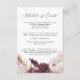This boho pampas wedding weekend schedule of events enclosure card is perfect for a summer wedding. The floral watercolor design features bohemian burgundy and blush pink flowers with sprigs of neutral pampas grass and golden dried palm leaves.