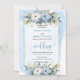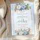 Ideal for formal, modern, or rustic-chic weddings, this dusty blue and gold floral invitation pairs perfectly with matching stationery, RSVP cards, menus, and signage for a cohesive event design.
