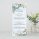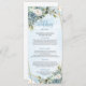 Pair with matching invitations, place cards, and table numbers for a cohesive, stylish look. Make your reception unforgettable with this dusty blue and gold floral menu — the perfect finishing touch for your elegant wedding day.