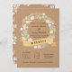 A whimsical hand-drawn pastel flower wreath on light brown craft paper makes this rustic wedding invitation suite a keeper. A trendy ribbon banner adds an artsy boho vibe, making this set perfect for relaxed outdoor weddings.