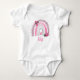 This sweet baby bodysuit with pastel pink Boho rainbow with ladybugs can be personalised with your desired name.
