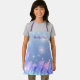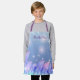 Beautiful personalised all-over apron design featuring pastel purple and pink feathers and sparkles on a blue gradient background. The text is fully customisable.