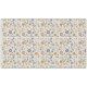 This image is a seamless pattern featuring a vibrant boho floral design. The pattern is composed of various stylised flowers in shades of blue, yellow, and orange, interspersed with leaves and small dots. The background is a simple white, allowing the colourful flowers to stand out. The overall aesthetic is cheerful and playful. The intricate details of the floral elements create a sense of depth and texture, adding visual interest. The use of contrasting colours adds vibrancy and makes the pattern visually appealing.