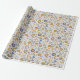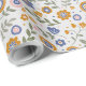 This image is a seamless pattern featuring a vibrant boho floral design. The pattern is composed of various stylised flowers in shades of blue, yellow, and orange, interspersed with leaves and small dots. The background is a simple white, allowing the colourful flowers to stand out. The overall aesthetic is cheerful and playful. The intricate details of the floral elements create a sense of depth and texture, adding visual interest. The use of contrasting colours adds vibrancy and makes the pattern visually appealing.