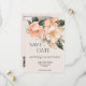 Boho peach flowers earthy colour theme wedding save the date template instant digital download, peach peony roses flower buds pampas grass watercolor flowers simple save the date with qr code at the back, if not needed - delete text from drop down menu