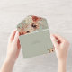 AVAILABLE WITH A QR CODE OR WITH OR WITHOUT DINNER SELECTION OPTIONS. Immerse yourself in the tranquillity of nature's embrace with our boho rustic wedding invitation, a harmonious fusion of timeless elegance and rustic charm. Set against a soothing sage green backdrop, this invitation exudes a sense of serene beauty, inviting you to embark on a journey of love surrounded by the splendour of the outdoors. Adorned with soft peach blush, beige and rust watercolor flowers and neutral earthy feathers delicately arranged around classic font text, this invitation is a masterpiece of understated sophistication. Each petal whispers tales of romance, while the gentle hues evoke a sense of warmth and intimacy that's perfect for celebrating your special day. Captivate your guests from the moment they receive your invitation and set the stage for a wedding that's as enchanting as it is unforgettable. Created by Simply Farmhouse Press.