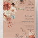 Boho Peach & Rust Floral & Feather Peach No Dinner All In One Invitation