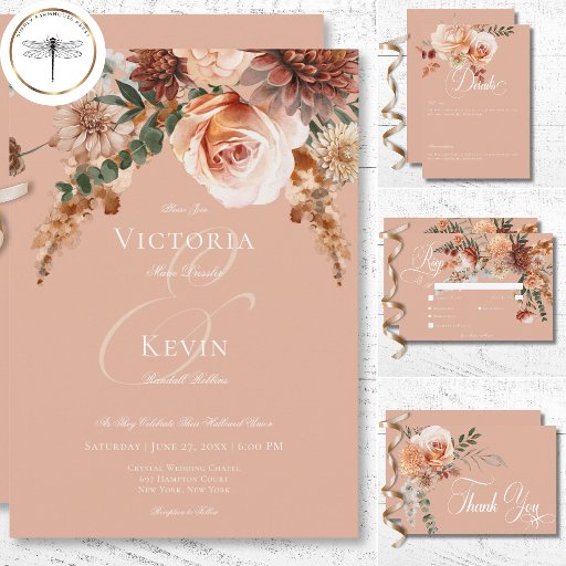 Boho Peach & Rust Floral Peach Blush WeddingDesigned by Kathe Santillo