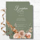 Elevate your wedding day with a touch of bohemian romance with our exquisite boho watercolor floral wedding reception card. At the pinnacle of elegance, a delicate spray of terracotta rust and soft peach blush mums, entwined with creamy peach blush roses and accented by verdant sage green eucalyptus and foliage, graces the top of this invitation. Against a serene sage green backdrop, our creamy white text adds a timeless charm, inviting your guests to join in the celebration of your love story. This invitation effortlessly captures the essence of boho chic, setting the stage for a day filled with warmth, joy, and unforgettable moments. Let the beauty of nature intertwine with the elegance of your union, starting with the perfect invitation that speaks to your unique style and vision. Choose our boho watercolor floral wedding design and embark on a journey to a day as enchanting as your love. Created by Simply Farmhouse Press.